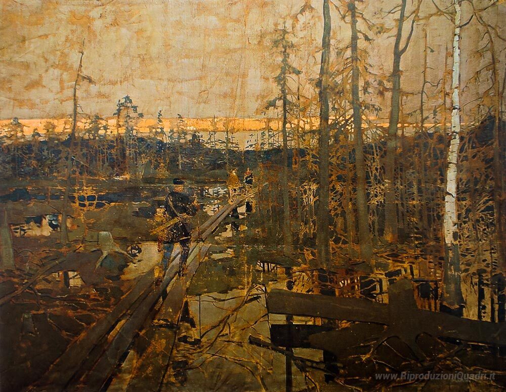Questo straordinario capolavoro esalta la bellezza della tundra con tonalità che si fondono in un'unica armonia visiva. La composizione riesce a trasportare lo spettatore nel paesaggio mozzafiato che rappresenta, rendendolo perfetto per arricchire ogni ambiente. Appeso in un soggiorno, in uno studio o in un foyer, il Primi passi di cercatori in tundra di Korovin porta con sé un senso di avventura e scoperta, trasformando gli spazi e stimolando la contemplazione.