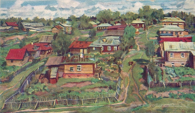 Ti offriamo una riproduzione artigianale su tela dell'opera famosa 'Provincia' di Konstantin Yuon, dal Museo delle Riproduzioni.