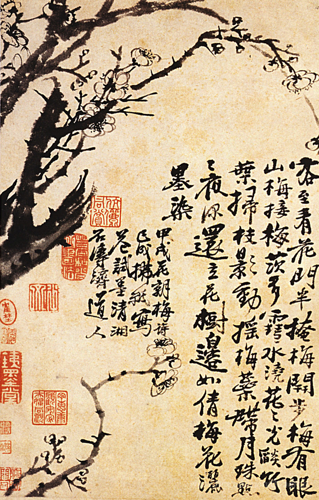 Ti offriamo una riproduzione artigianale su tela dell'opera famosa 'Prunus in fiore' di Shitao, dal Museo delle Riproduzioni.