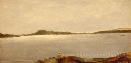 Ti offriamo una riproduzione artigianale su tela dell'opera famosa 'Québec, vue de l'?le d'Orléans' di Jean Paul Lemieux, dal Museo delle Riproduzioni.