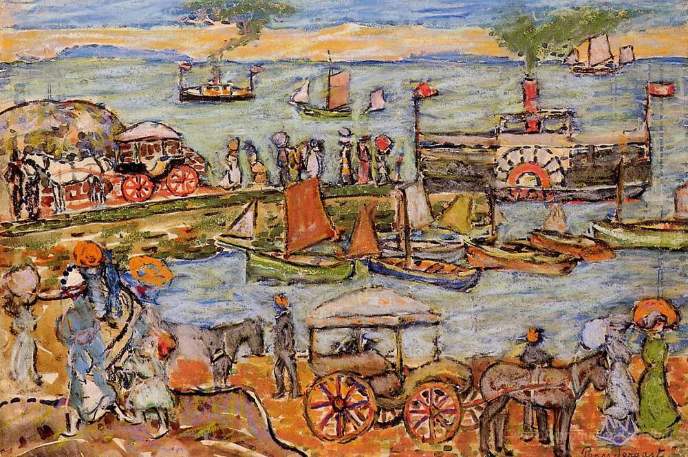 Ti offriamo una riproduzione artigianale su tela dell'opera famosa 'Quai, Dinard' di Maurice Prendergast, dal Museo delle Riproduzioni.