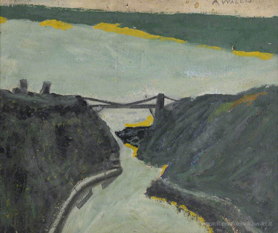Ti offriamo una riproduzione artigianale su tela dell'opera famosa 'Ravine con Estuario (Canale di Bristol e Ponte sospeso)' di Alfred Wallis, dal Museo delle Riproduzioni.
