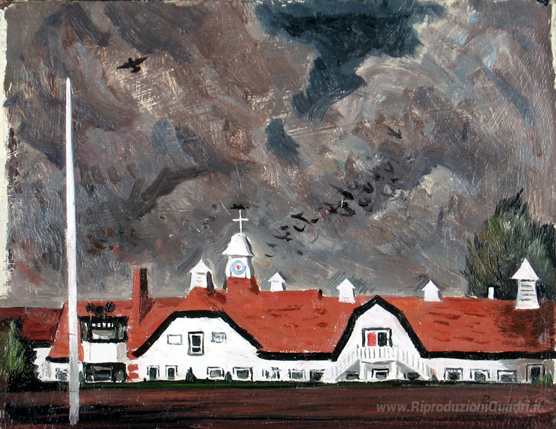 Ti offriamo una riproduzione artigianale su tela dell'opera famosa 'RCAF Elem. Scuola, Eglinton' di Jack Bush, dal Museo delle Riproduzioni.