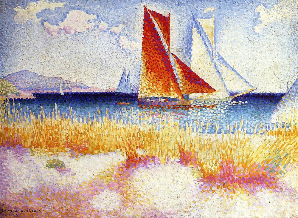 Ti offriamo una riproduzione artigianale su tela dell'opera famosa 'Regata' di Henri-Edmond Cross, dal Museo delle Riproduzioni.