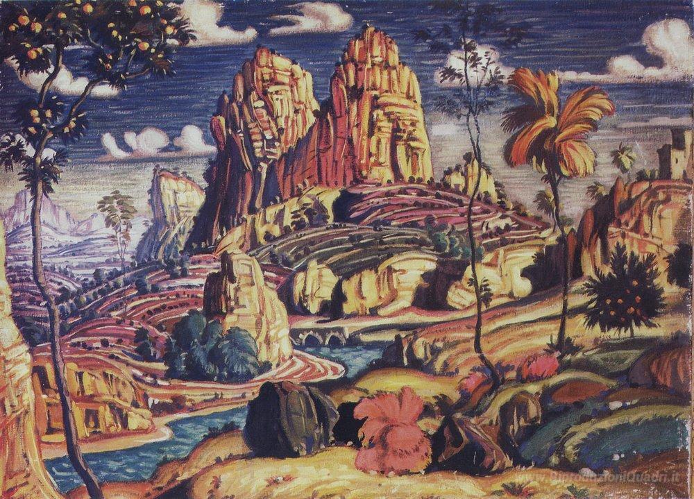 Ti offriamo una riproduzione artigianale su tela dell'opera famosa 'Ricordi di Mantegna' di Konstantin Bogaevsky, dal Museo delle Riproduzioni.