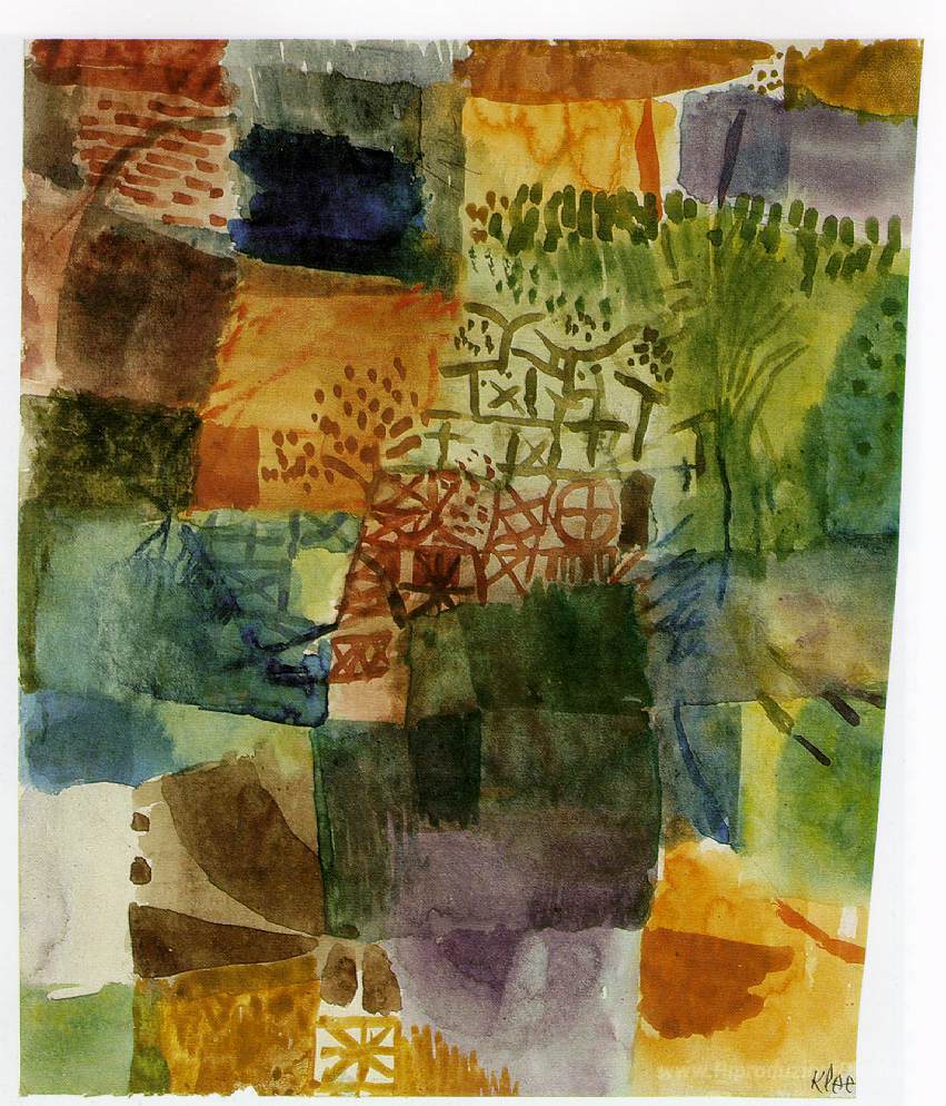 Ti offriamo una riproduzione artigianale su tela dell'opera famosa 'Ricordo di un giardino' di Paul Klee, dal Museo delle Riproduzioni.