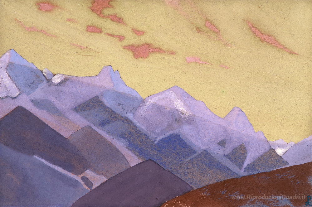 Ti offriamo una riproduzione artigianale su tela dell'opera famosa 'Ridge. Approcci alla Everest' di Nicholas Roerich, dal Museo delle Riproduzioni.