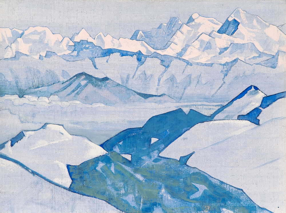 Ti offriamo una riproduzione artigianale su tela dell'opera famosa 'Ridge dell'Everest' di Nicholas Roerich, dal Museo delle Riproduzioni.