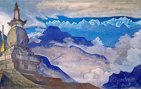 Ti offriamo una riproduzione artigianale su tela dell'opera famosa 'Rinchenpong' di Nicholas Roerich, dal Museo delle Riproduzioni.