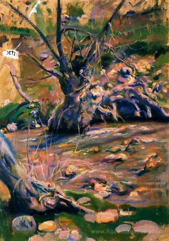 Ti offriamo una riproduzione artigianale su tela dell'opera famosa 'Rio Lozoya il passaggio dal Paular' di Carlos Saenz de Tejada, dal Museo delle Riproduzioni.