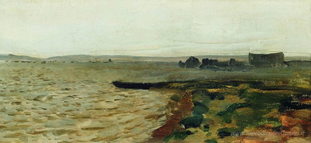 Ti offriamo una riproduzione artigianale su tela dell'opera famosa 'Riva del fiume' di Isaac Levitan, dal Museo delle Riproduzioni.