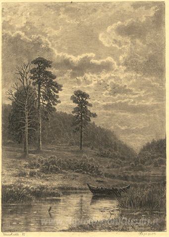 Ti offriamo una riproduzione artigianale su tela dell'opera famosa 'Riva' di Ivan Shishkin, dal Museo delle Riproduzioni.