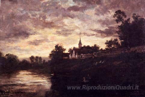 Ti offriamo una riproduzione artigianale su tela dell'opera famosa 'Rive del fiume Oise' di Charles-Francois Daubigny, dal Museo delle Riproduzioni.