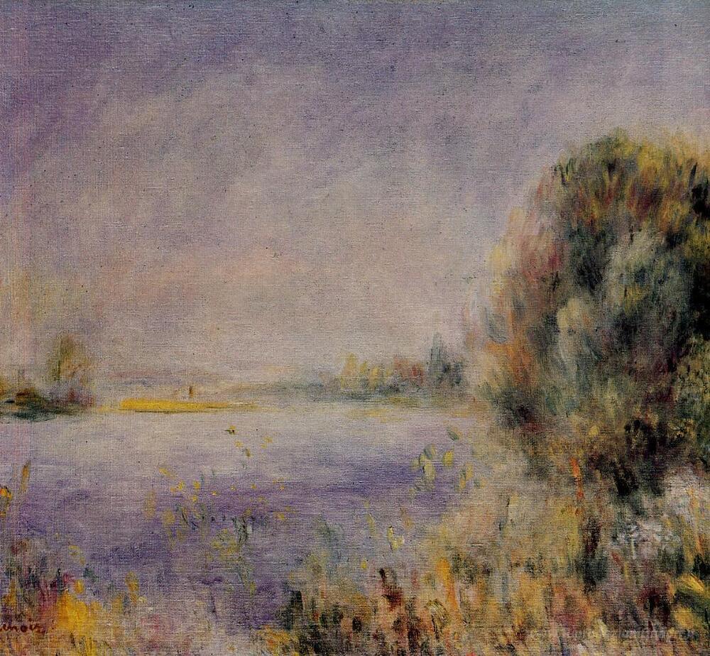 Ti offriamo una riproduzione artigianale su tela dell'opera famosa 'Rive del fiume' di Pierre-Auguste Renoir, dal Museo delle Riproduzioni.