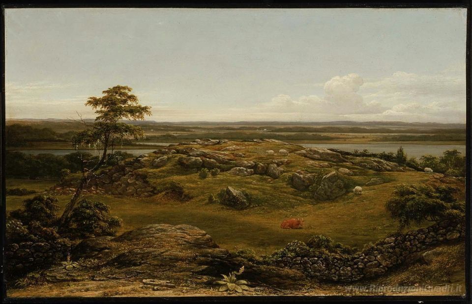 Ti offriamo una riproduzione artigianale su tela dell'opera famosa 'Rocce nel New England' di Martin Johnson Heade, dal Museo delle Riproduzioni.