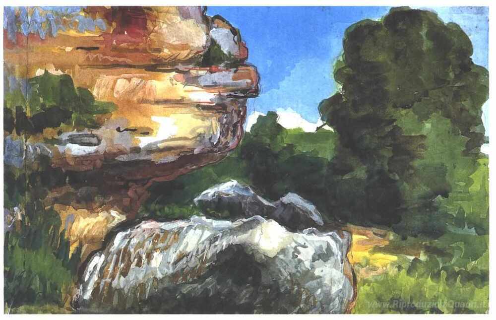 Ti offriamo una riproduzione artigianale su tela dell'opera famosa 'Rocce' di Paul Cezanne, dal Museo delle Riproduzioni.
