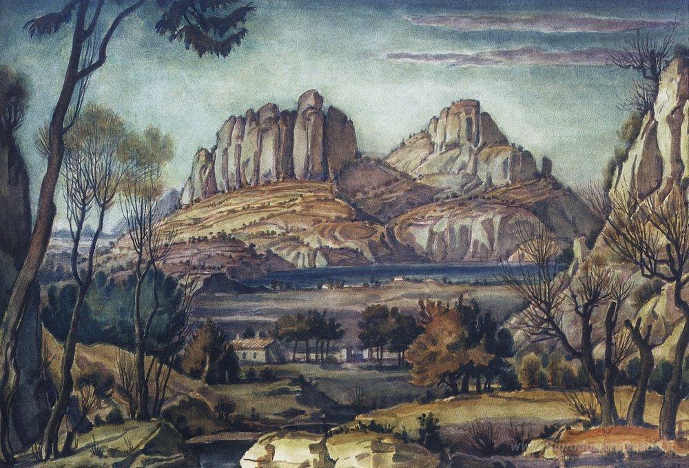 Ti offriamo una riproduzione artigianale su tela dell'opera famosa 'Romantico paesaggio (paesaggio di Crimea)' di Konstantin Bogaevsky, dal Museo delle Riproduzioni.