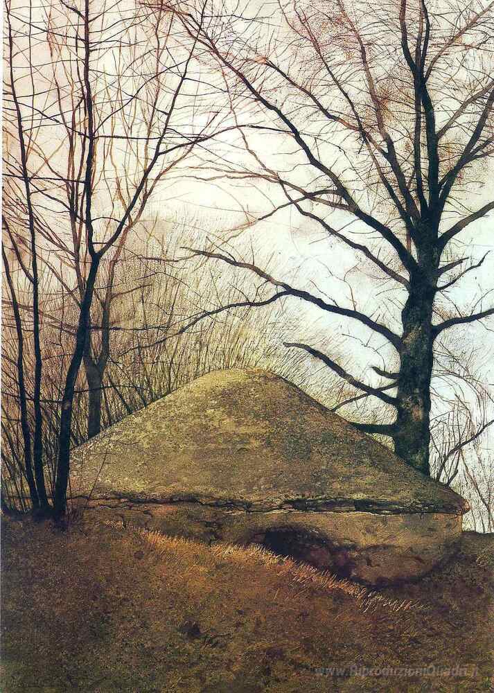 Ti offriamo una riproduzione artigianale su tela dell'opera famosa 'Root Cellar' di Jamie Wyeth, dal Museo delle Riproduzioni.