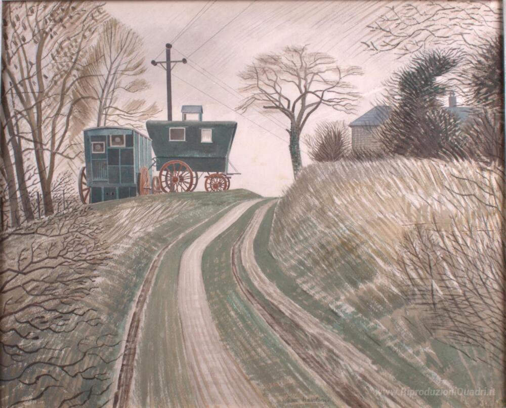 Ti offriamo una riproduzione artigianale su tela dell'opera famosa 'Roulotte' di Eric Ravilious, dal Museo delle Riproduzioni.
