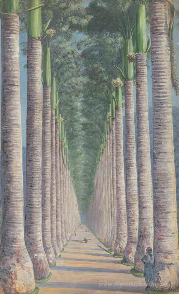 Ti offriamo una riproduzione artigianale su tela dell'opera famosa 'Royal Palm Avenue,' di Marianne North, dal Museo delle Riproduzioni.