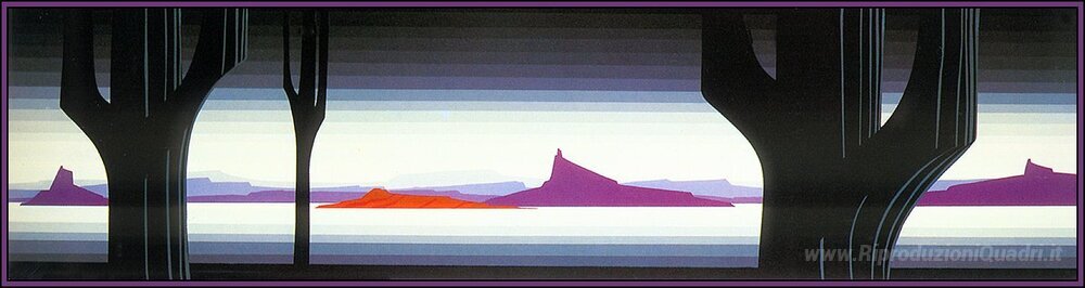 Ti offriamo una riproduzione artigianale su tela dell'opera famosa 'Saguaro' di Eyvind Earle, dal Museo delle Riproduzioni.