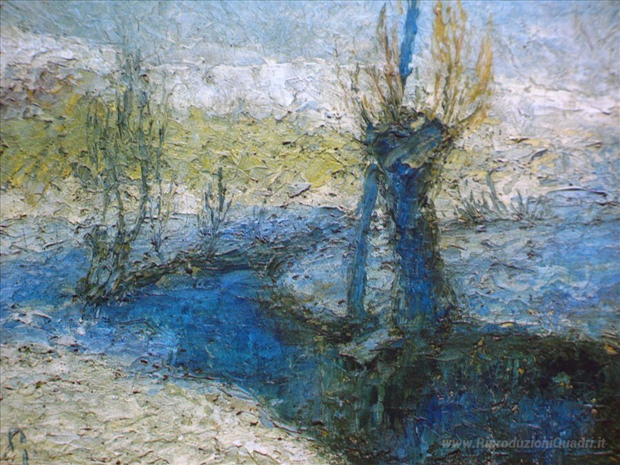 Ti offriamo una riproduzione artigianale su tela dell'opera famosa 'Salici lungo il torrente' di Ivan Grohar, dal Museo delle Riproduzioni.