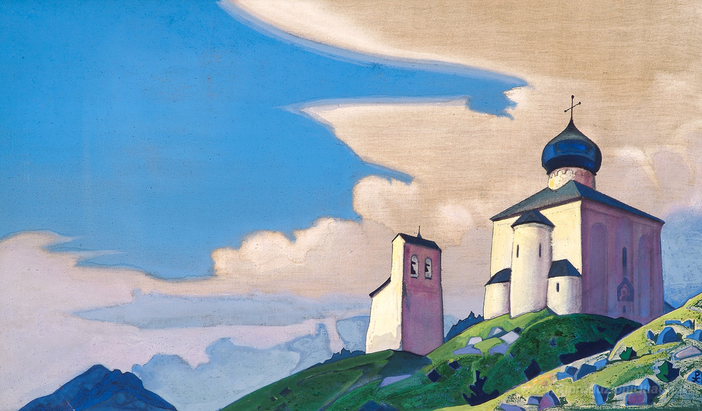 Ti offriamo una riproduzione artigianale su tela dell'opera famosa 'San Sergio Hermitage' di Nicholas Roerich, dal Museo delle Riproduzioni.