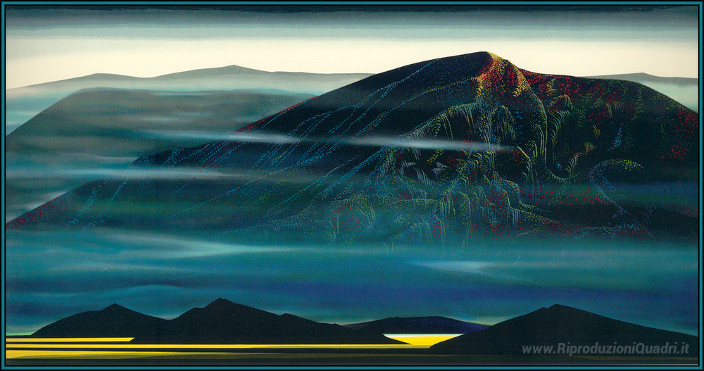Ti offriamo una riproduzione artigianale su tela dell'opera famosa 'Santa Fe Trail nuovo Serigrap' di Eyvind Earle, dal Museo delle Riproduzioni.