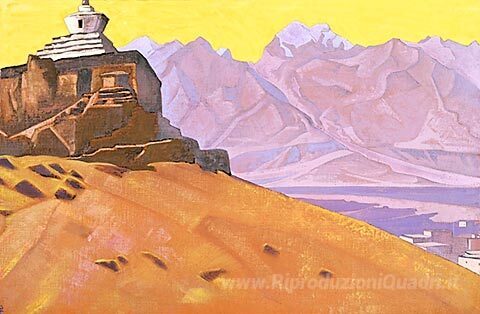 Ti offriamo una riproduzione artigianale su tela dell'opera famosa 'Santuari e cittadelle' di Nicholas Roerich, dal Museo delle Riproduzioni.