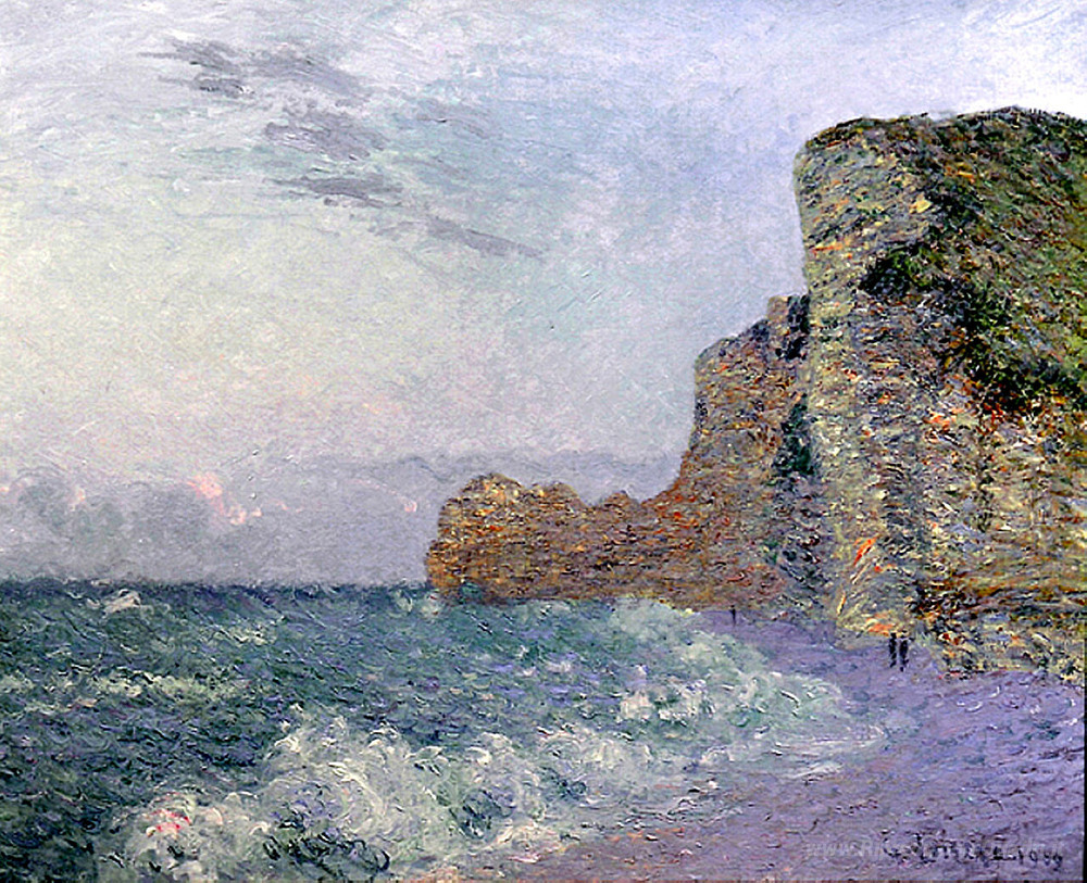 Ti offriamo una riproduzione artigianale su tela dell'opera famosa 'Scogliere a sera Normandia' di Gustave Loiseau, dal Museo delle Riproduzioni.
