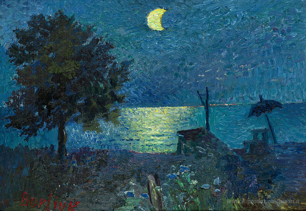 Ti offriamo una riproduzione artigianale su tela dell'opera famosa 'Sea at Night' di David Burliuk, dal Museo delle Riproduzioni.