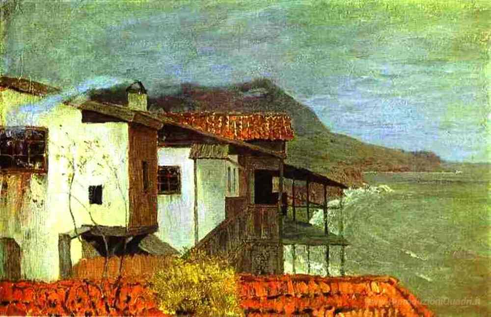 Ti offriamo una riproduzione artigianale su tela dell'opera famosa 'Seashore in Crimea' di Isaac Levitan, dal Museo delle Riproduzioni.