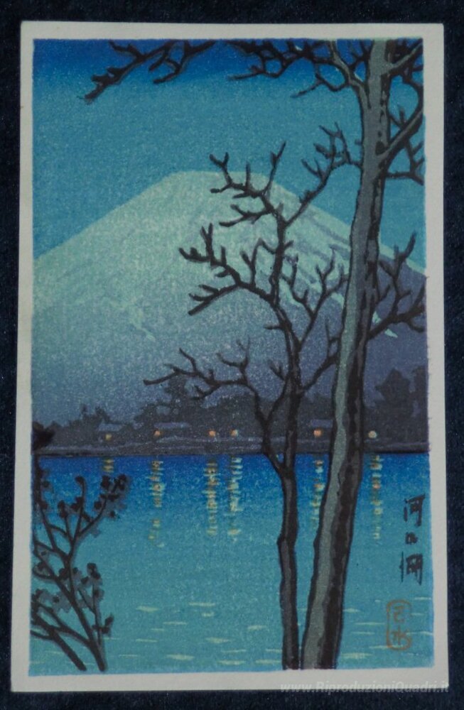 Ti offriamo una riproduzione artigianale su tela dell'opera famosa 'Serata al Minakami' di Hasui Kawase, dal Museo delle Riproduzioni.