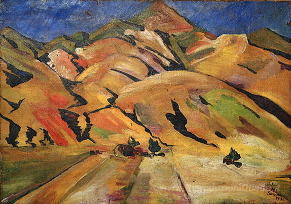 Ti offriamo una riproduzione artigianale su tela dell'opera famosa 'Serata in montagna' di Martiros Saryan, dal Museo delle Riproduzioni.