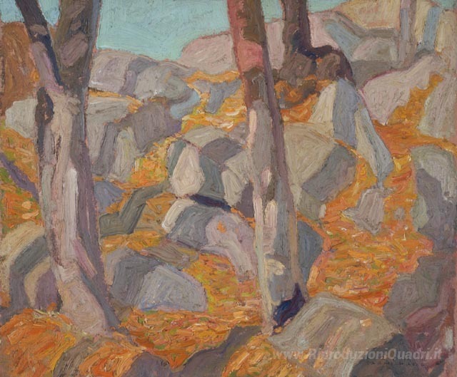 Ti offriamo una riproduzione artigianale su tela dell'opera famosa 'Shadows' di Franklin Carmichael, dal Museo delle Riproduzioni.