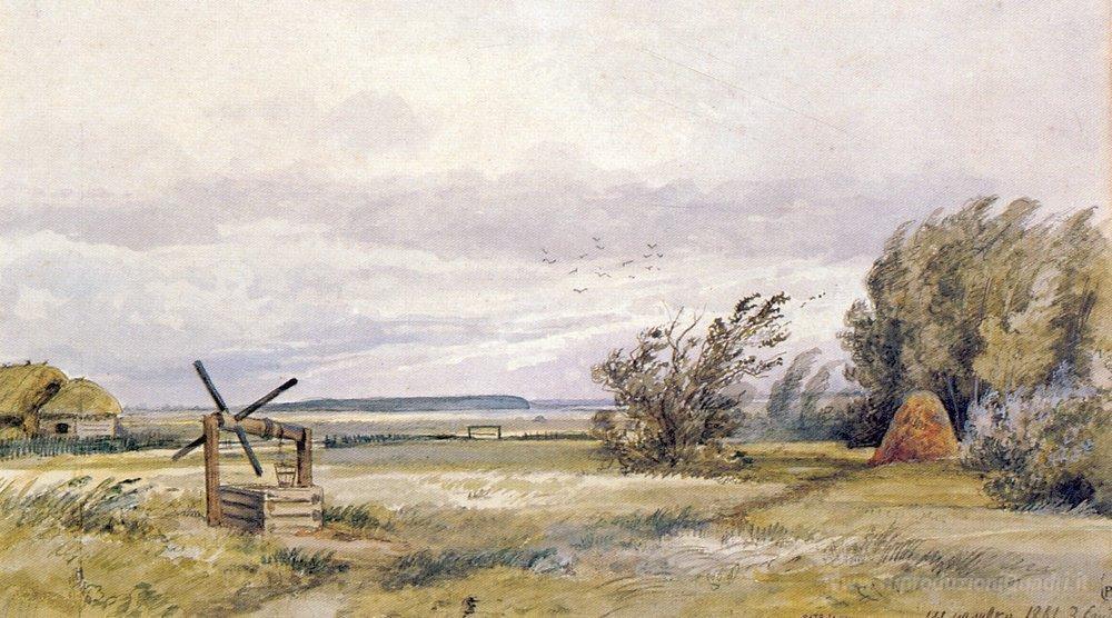 Ti offriamo una riproduzione artigianale su tela dell'opera famosa 'Shmelevka. Giorno ventoso' di Ivan Shishkin, dal Museo delle Riproduzioni.