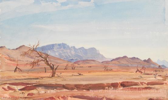 Ti offriamo una riproduzione artigianale su tela dell'opera famosa 'Siccità (Arkaba)' di Hans Heysen, dal Museo delle Riproduzioni.