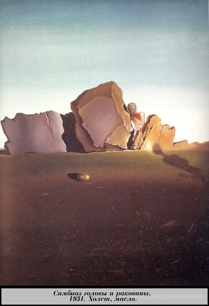 Ti offriamo una riproduzione artigianale su tela dell'opera famosa 'Simbiosi tra la testa e Shell' di Salvador Dali, dal Museo delle Riproduzioni.