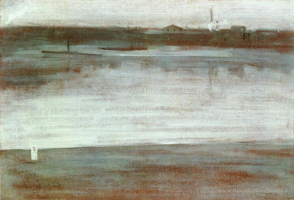 Ti offriamo una riproduzione artigianale su tela dell'opera famosa 'Sinfonia in grigio: Early Morning, Tamigi' di James McNeill Whistler, dal Museo delle Riproduzioni.