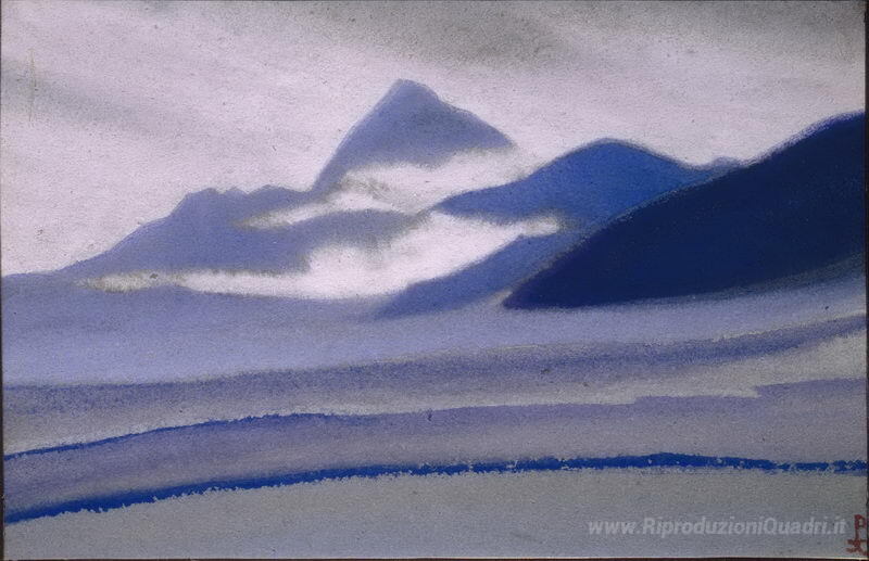 Ti offriamo una riproduzione artigianale su tela dell'opera famosa 'Siver nuvole sopra le montagne' di Nicholas Roerich, dal Museo delle Riproduzioni.