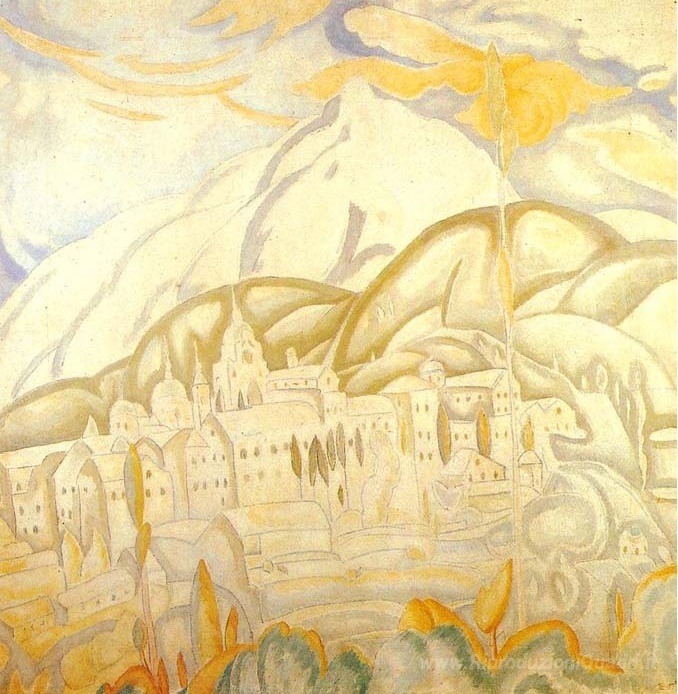 Ti offriamo una riproduzione artigianale su tela dell'opera famosa 'Skete di Agios Andreas' di Spyros Papaloukas, dal Museo delle Riproduzioni.