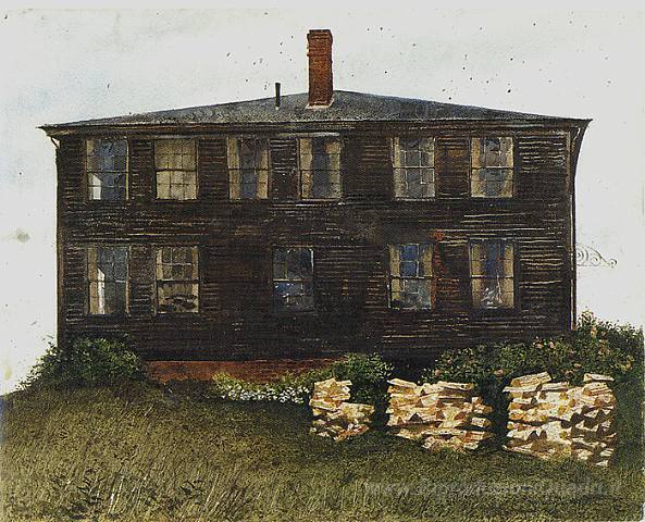 Ti offriamo una riproduzione artigianale su tela dell'opera famosa 'Slayton Casa' di Jamie Wyeth, dal Museo delle Riproduzioni.