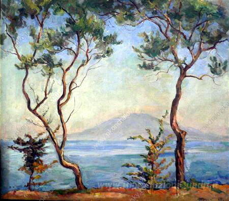 Scopri l'incanto del dipinto a olio Sorrento. Vesuvio. Due alberi di ulivo, un'opera straordinaria del maestro russo-italiano Pyotr Konchalovsky. Con una carriera che si è sviluppata tra le vibranti atmosfere di Napoli e le influenze del periodo post-impressionista, Konchalovsky riesce a catturare l'essenza di un paesaggio ricco di storia e bellezza, trasformando la luce e il colore in un linguaggio visivo unico.