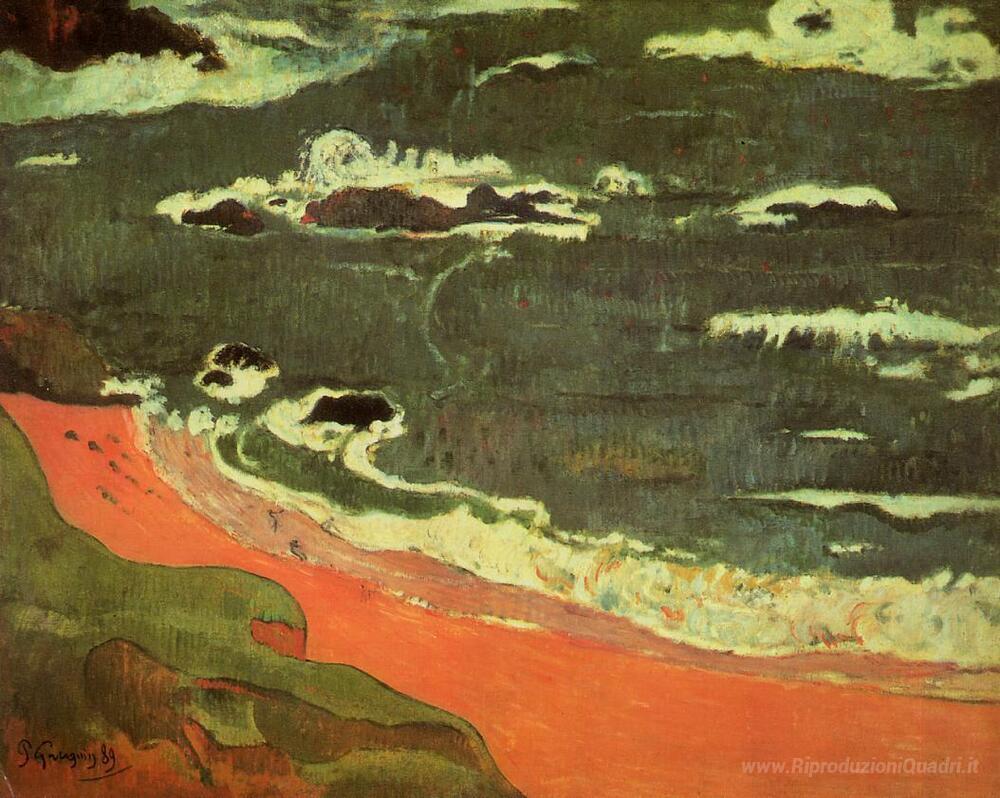 Ti offriamo una riproduzione artigianale su tela dell'opera famosa 'Spiaggia a Le Pouldu' di Paul Gauguin, dal Museo delle Riproduzioni.