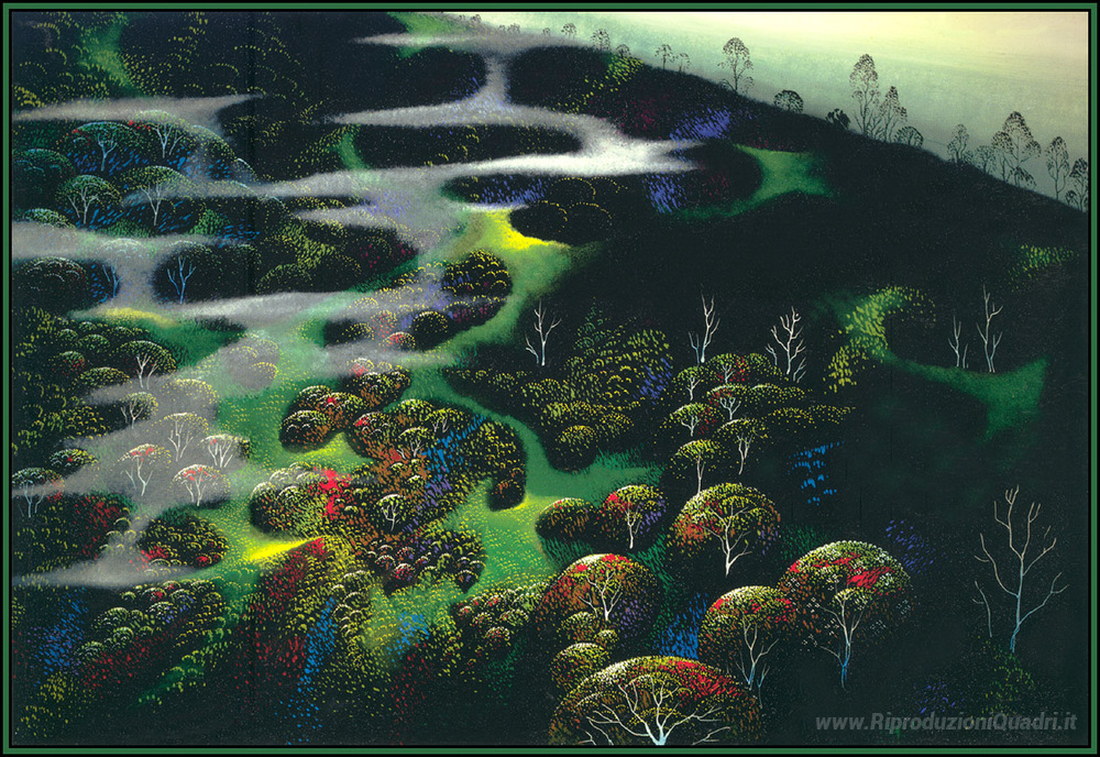 Scoprite la meraviglia del mondo artistico con il dipinto a olio Spot of Magic dell'acclamato artista Eyvind Earle. Già noto per il suo stile distintivo che fonde elementi di paesaggio e astrazione, Earle cattura l'attenzione con la sua capacità di evocare emozioni attraverso colori vividi e forme sinuose. Ogni pennellata di questo capolavoro è un invito a immergersi in un universo di magia e serenità.