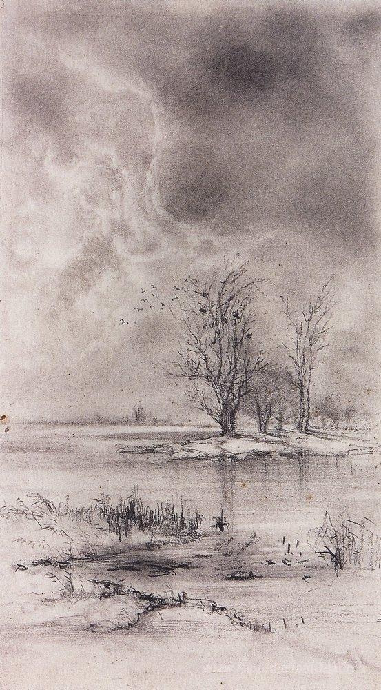 Ti offriamo una riproduzione artigianale su tela dell'opera famosa 'Spring landscape' di Aleksey Savrasov, dal Museo delle Riproduzioni.