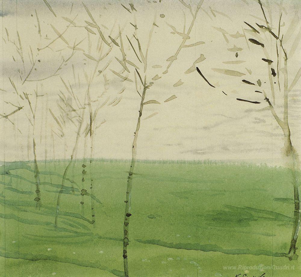 Ti offriamo una riproduzione artigianale su tela dell'opera famosa 'Spring Landscape' di Konstantin Somov, dal Museo delle Riproduzioni.