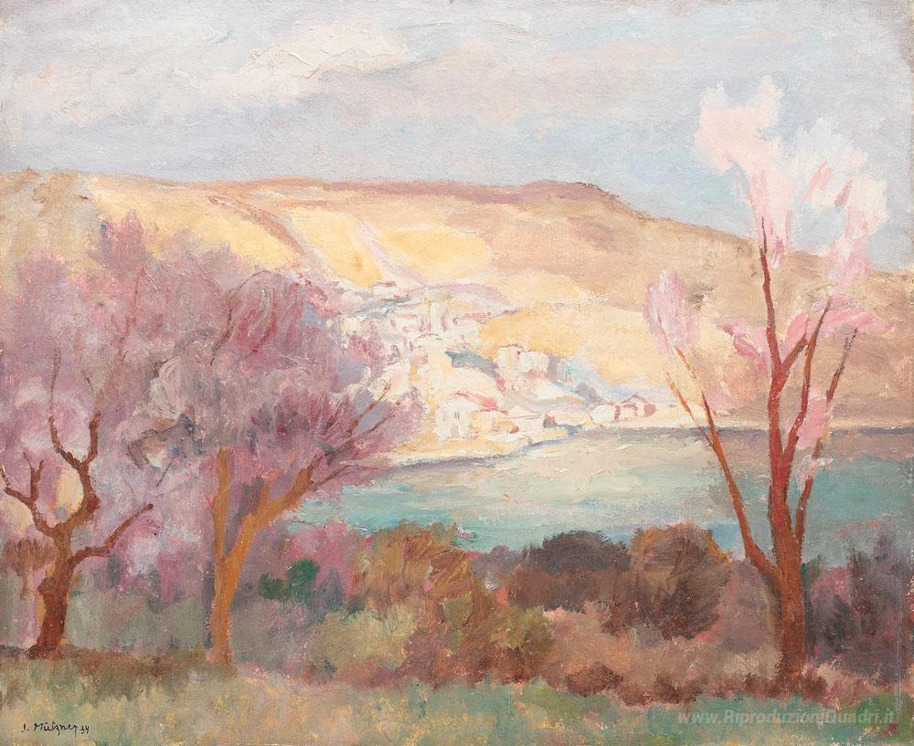 Ti offriamo una riproduzione artigianale su tela dell'opera famosa 'Springtime in Balcic' di Samuel Mutzner, dal Museo delle Riproduzioni.