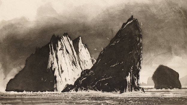 Ti offriamo una riproduzione artigianale su tela dell'opera famosa 'Stac an Armin Sera' di Norman Ackroyd, dal Museo delle Riproduzioni.
