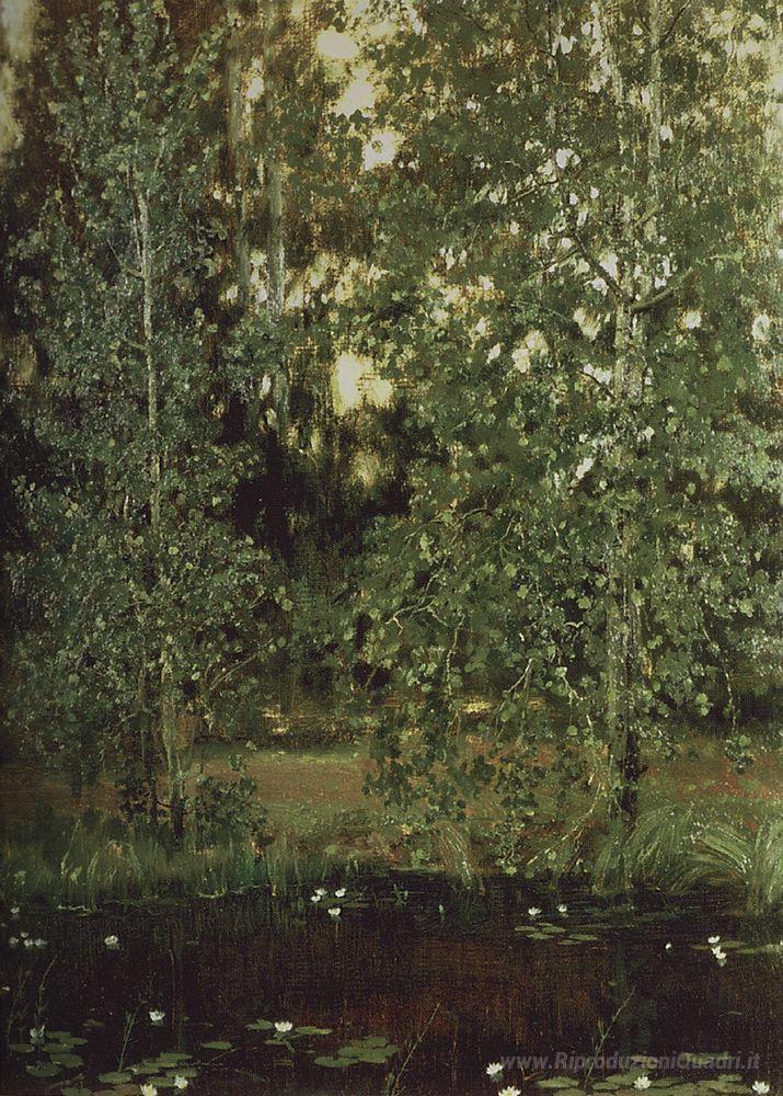 Ti offriamo una riproduzione artigianale su tela dell'opera famosa 'Stagno in Ochtir' di Viktor Vasnetsov, dal Museo delle Riproduzioni.